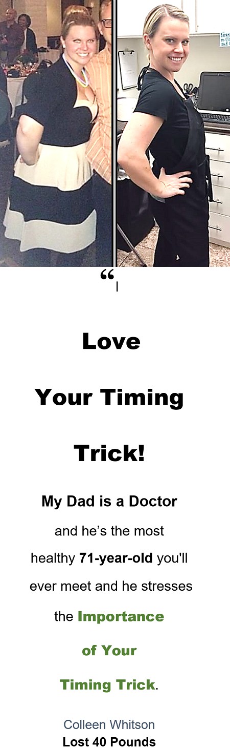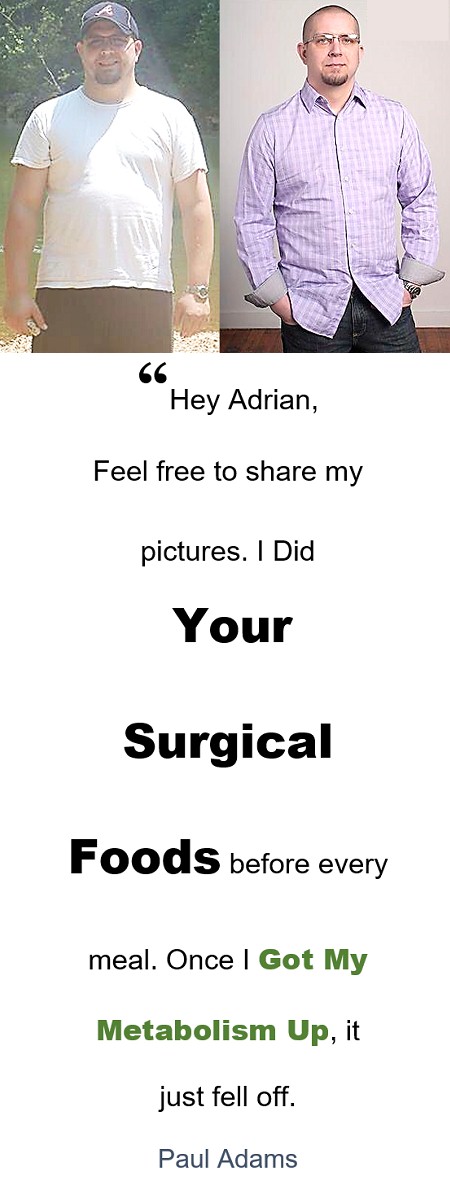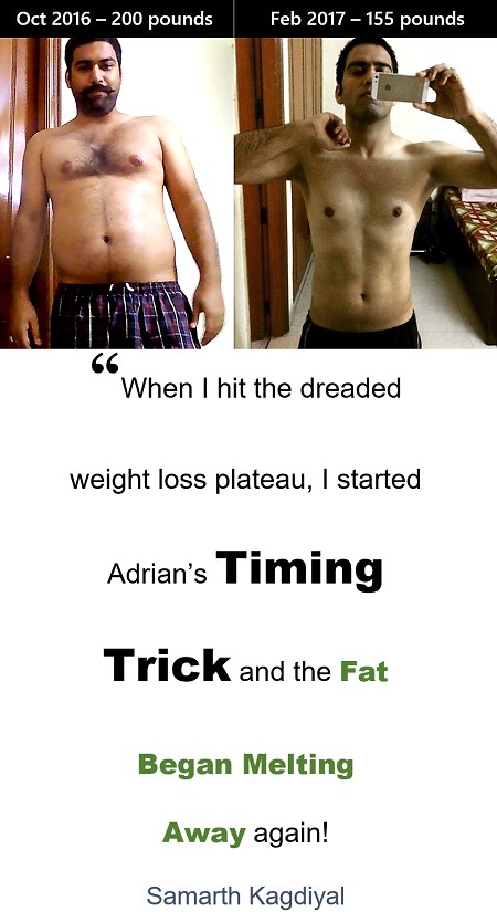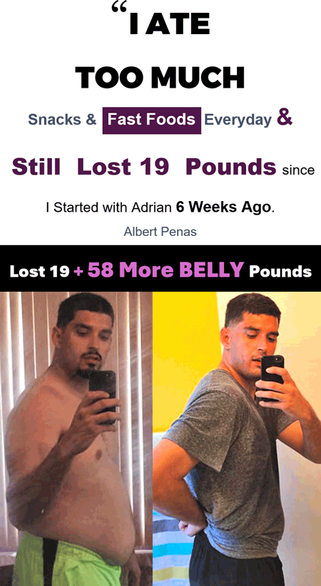 - Eat Anytime You Want but, Adrian's Timing Trick cuts off bad hormones holding onto stubborn belly fat. Lose More of Your Stomach as you're losing everywhere else.